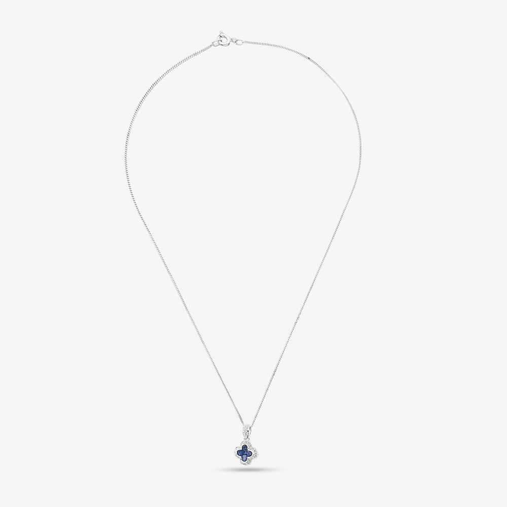 9ct White Gold Sapphire and Diamond Quatrefoil Cluster Necklace PP05330 SA 5.13.0034