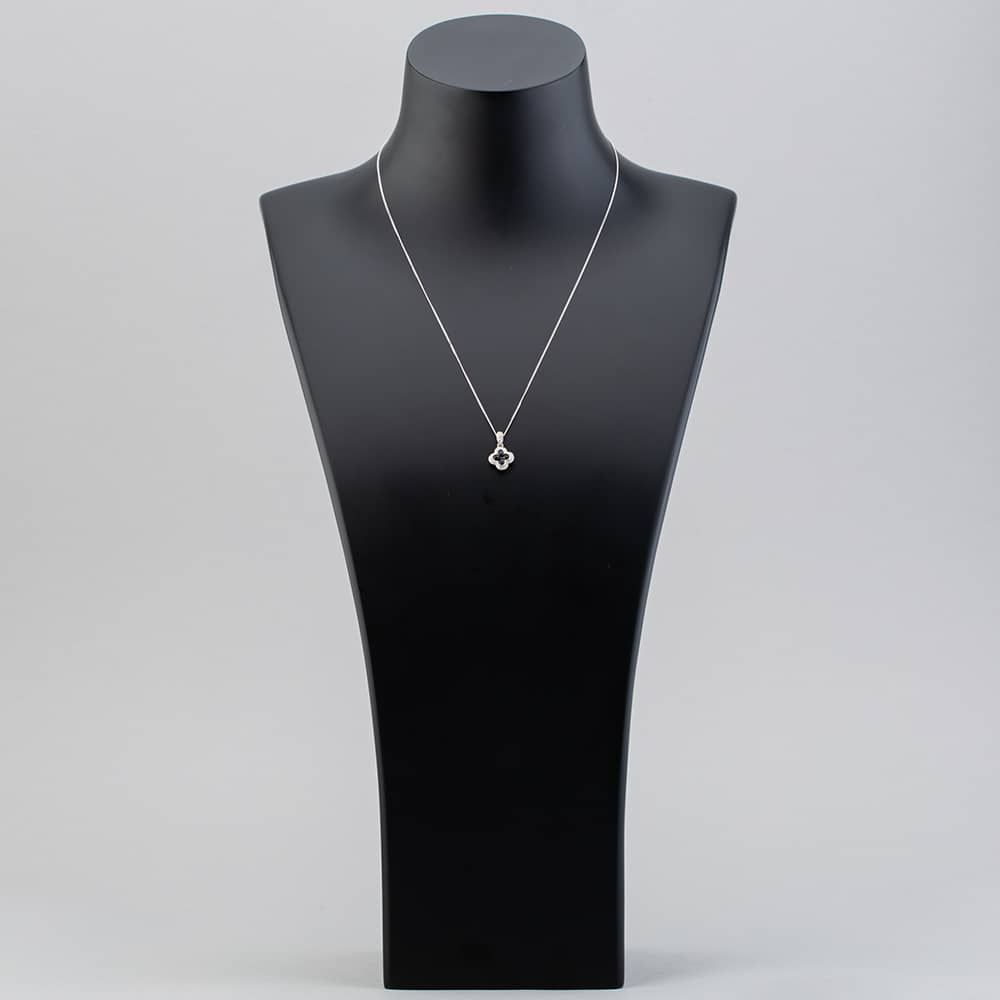 T.H.Baker 9ct White Gold Sapphire and Diamond Quatrefoil Cluster Necklace PP05330 SA 5.13.0034 PP05330 SA 5.13.0034