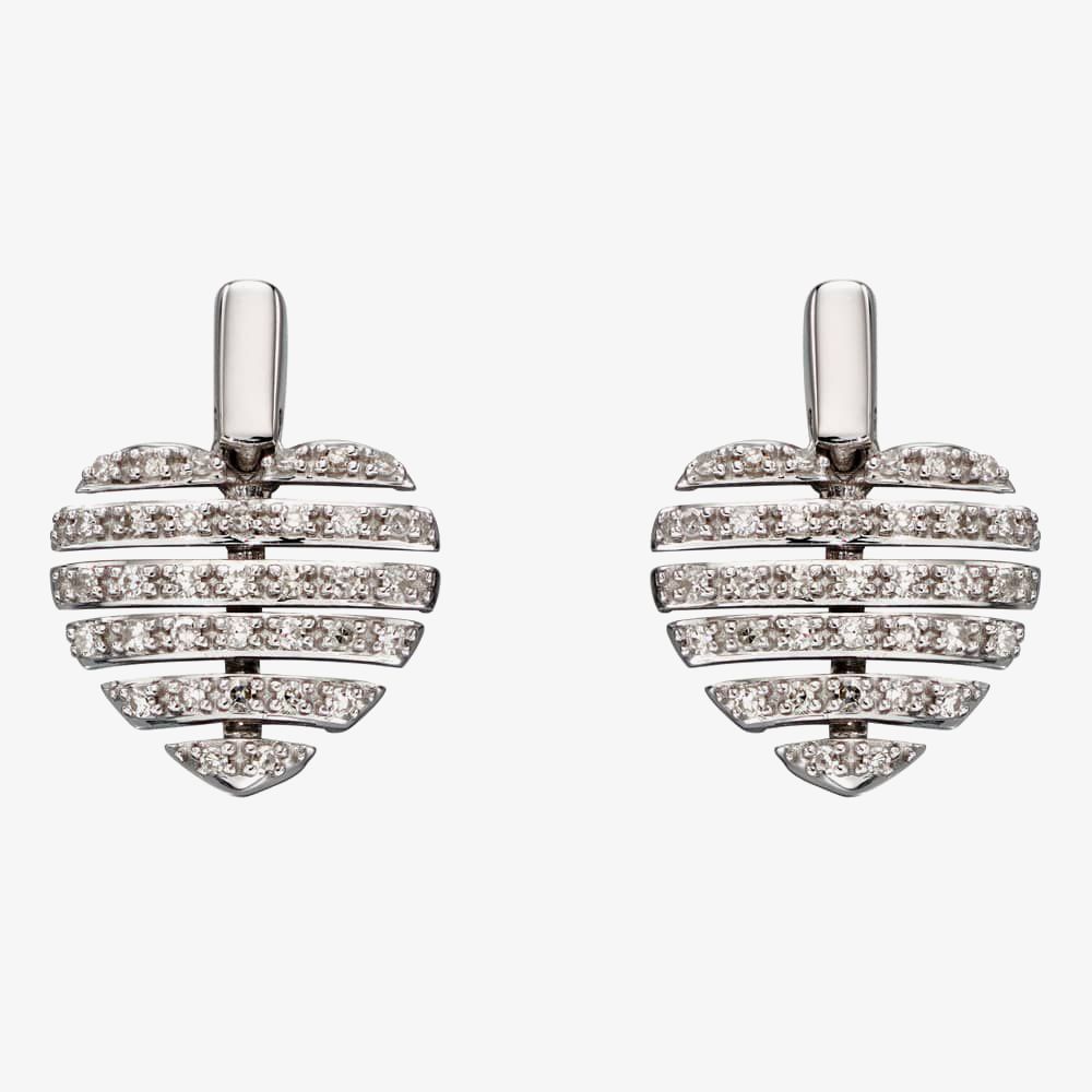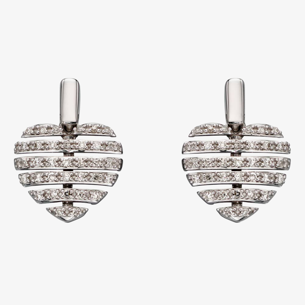 9ct White Gold Split Diamond Heart Stud Earrings GE2298