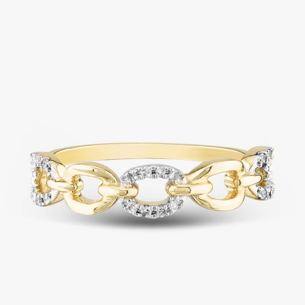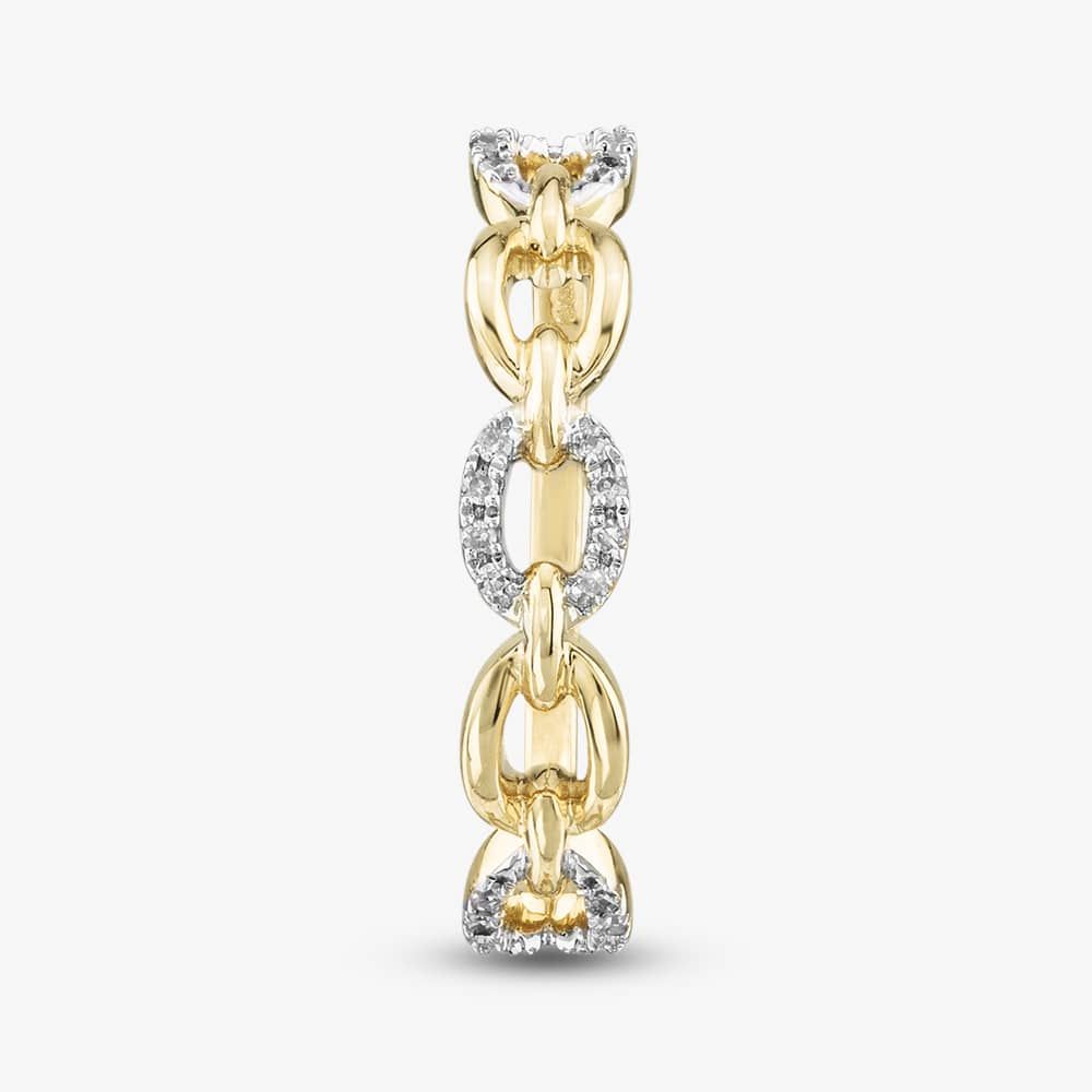 This elegant 9ct yellow gold ring features a stunning 0.05ct brilliant-cut diamond, beautifully set in an oval link design, creating a timeless and sophisticated look.