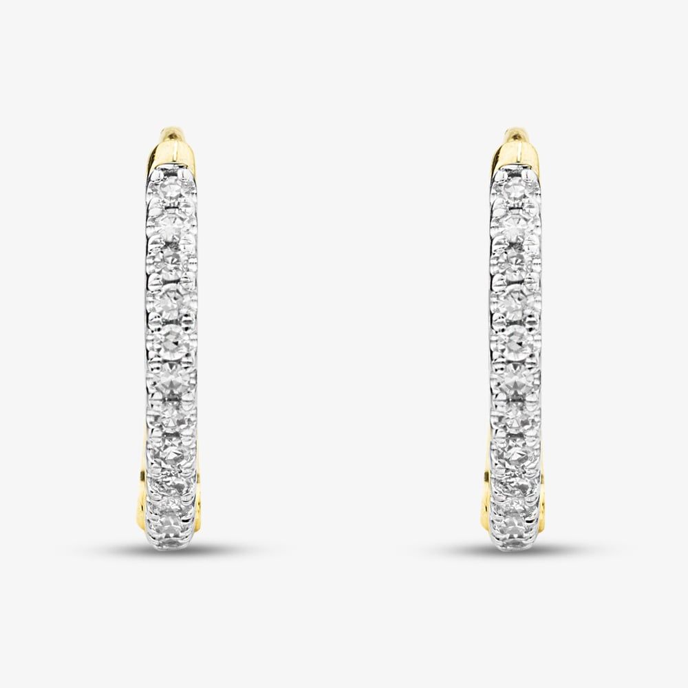 Crafted in 9ct yellow gold, these classic huggie hoop earrings feature 0.10ct of brilliant cut diamonds in a secure claw setting. Designed for everyday elegance, they offer a subtle sparkle and a snug, comfortable fit.