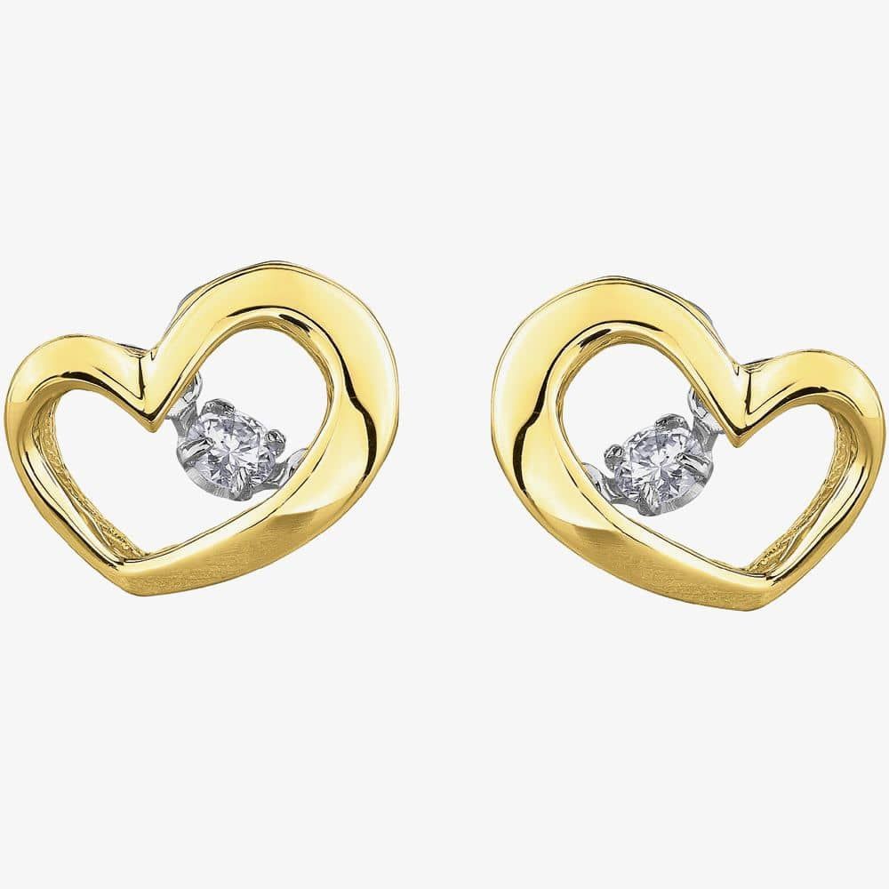 A gorgeous 9ct yellow gold heart themed jewellery set combining a necklace and earrings. These beautiful heart shaped stud earrings feature a sparkling diamond with a total weight of 0.10ct. The matching pendant necklace also features an open heart motif with a round cut 0.05ct diamond.