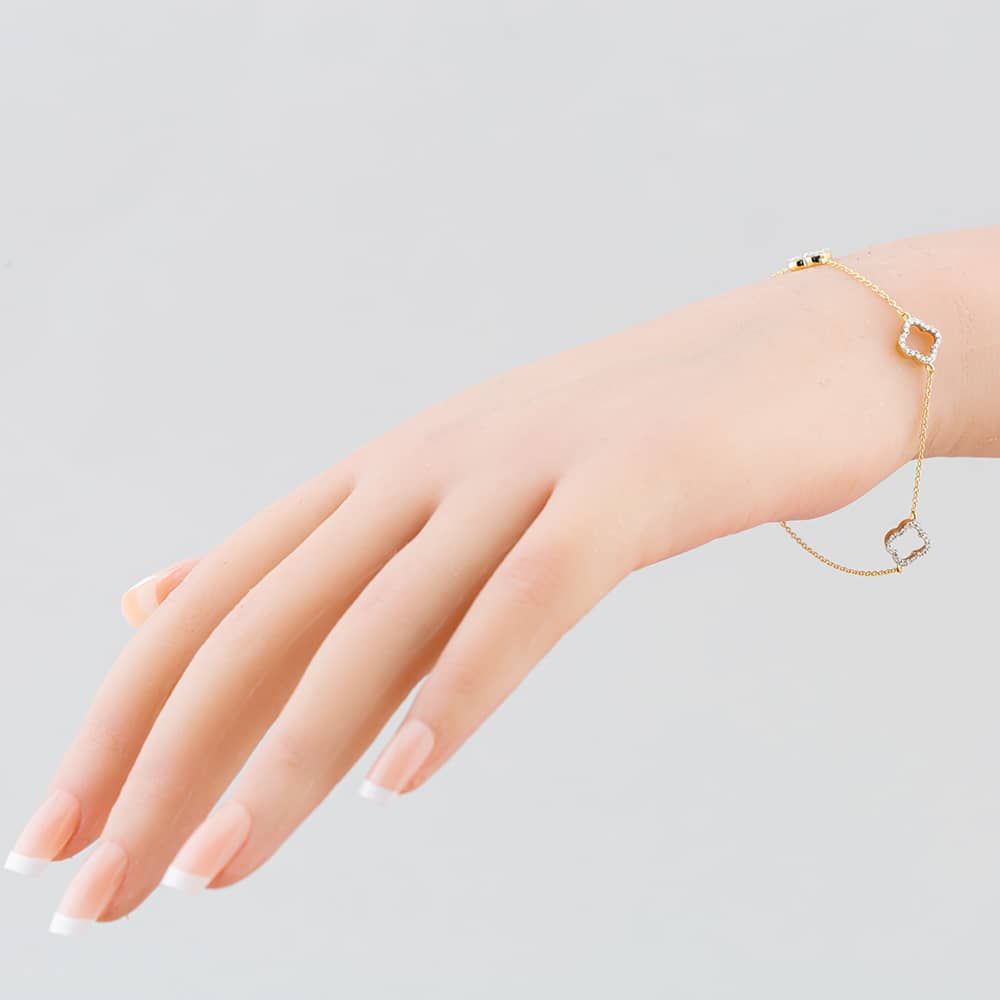T.H.Baker 9ct Yellow Gold 0.20ct Brilliant Cut Diamond Triple Clover Chain Bracelet THB39617-20NJ (YG)