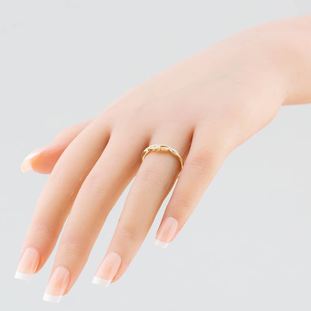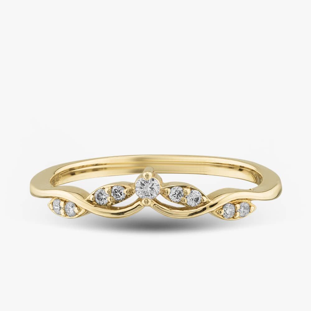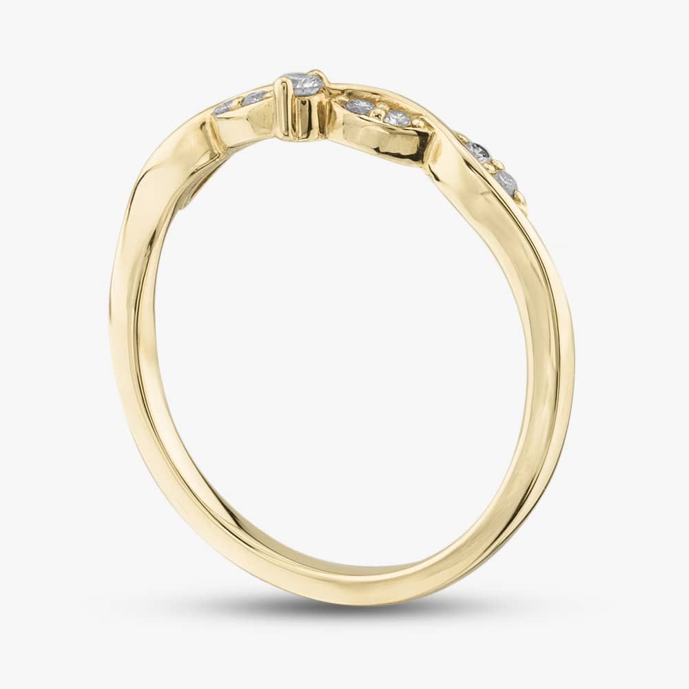 This exquisite wishbone ring is delicately crafted from 9ct yellow gold and features nine brilliant-cut white diamonds with a total carat of 0.33ct. The ring's crossover wishbone design will perfectly complement your stacker rings.