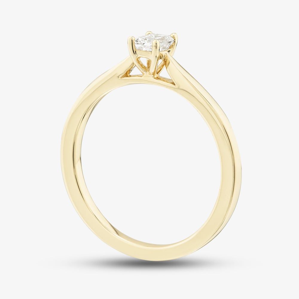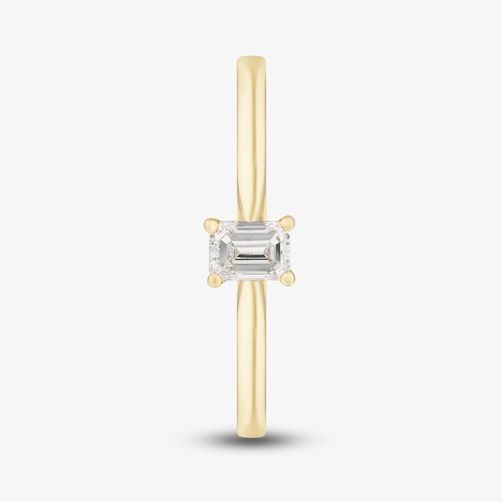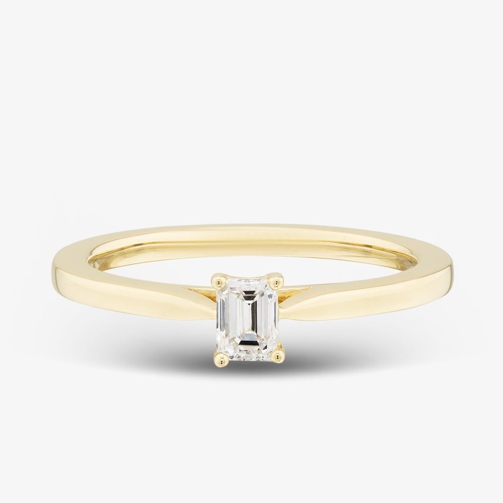 This elegant 9ct yellow gold solitaire ring showcases a dazzling 0.33ct emerald-cut diamond with an H colour and SI2 clarity, offering a brilliant sparkle and timeless sophistication. Perfect for any occasion.