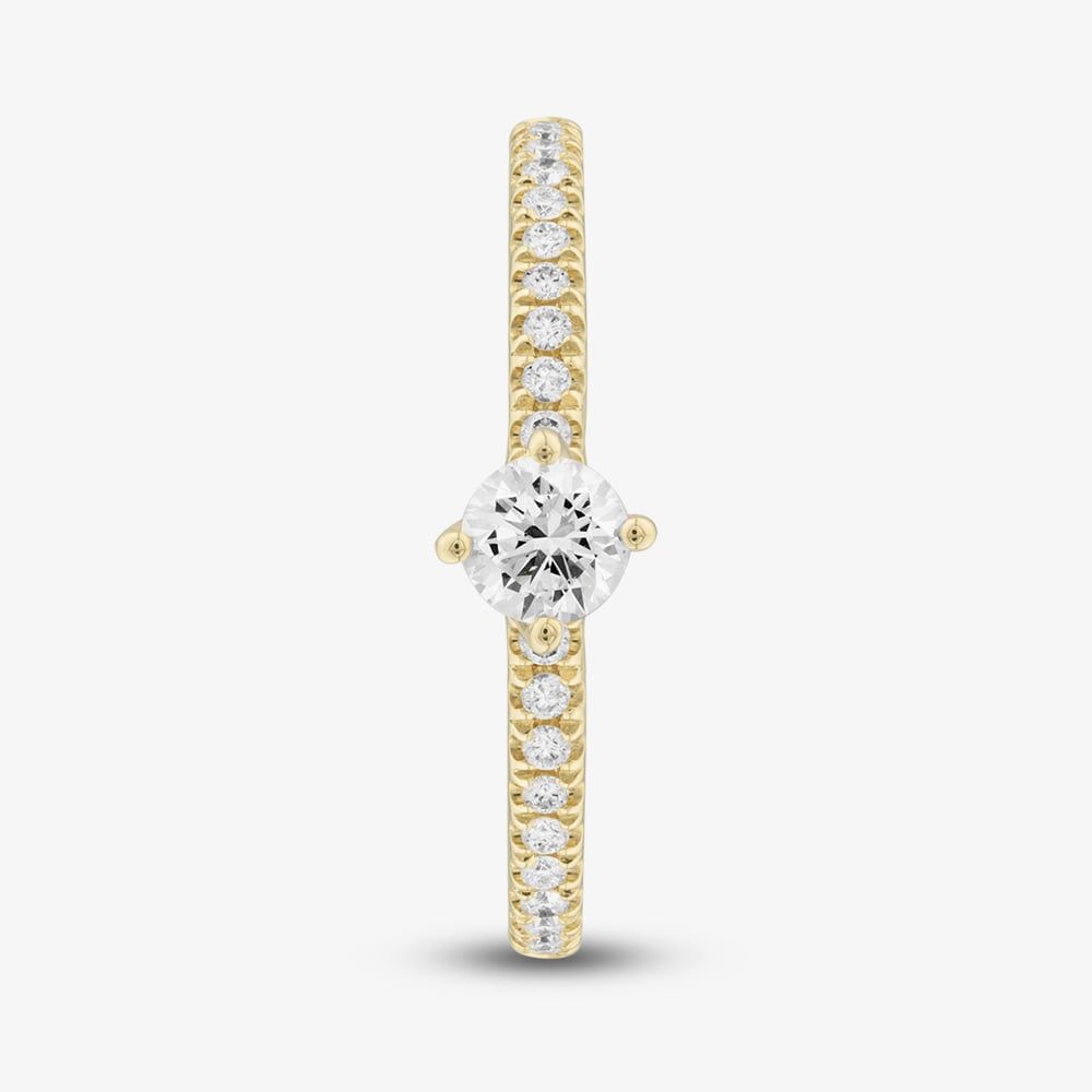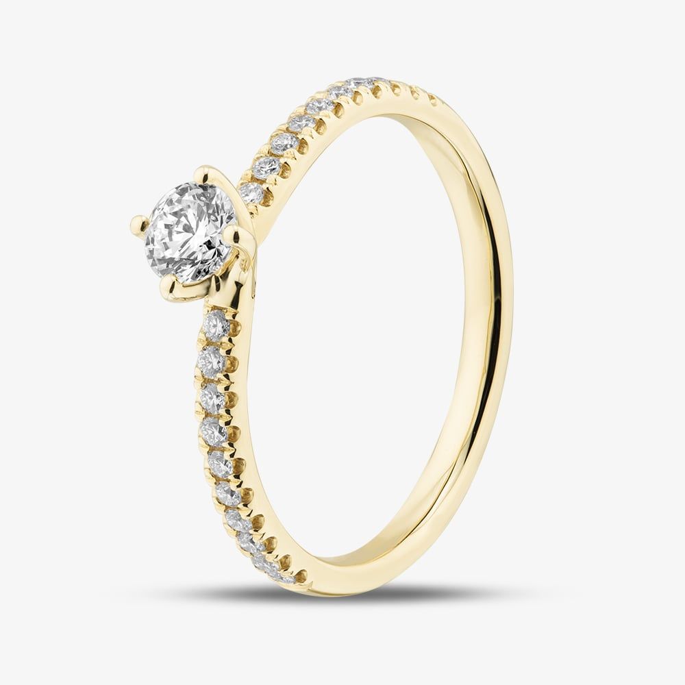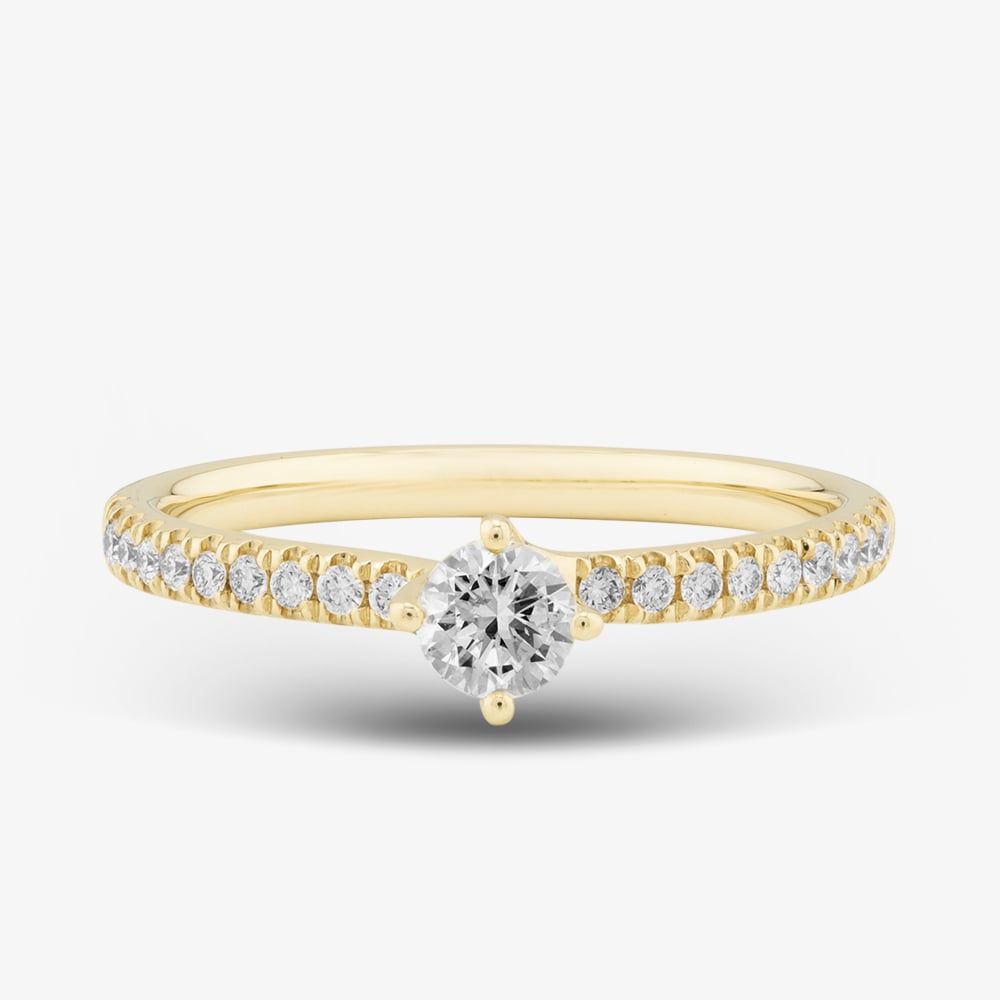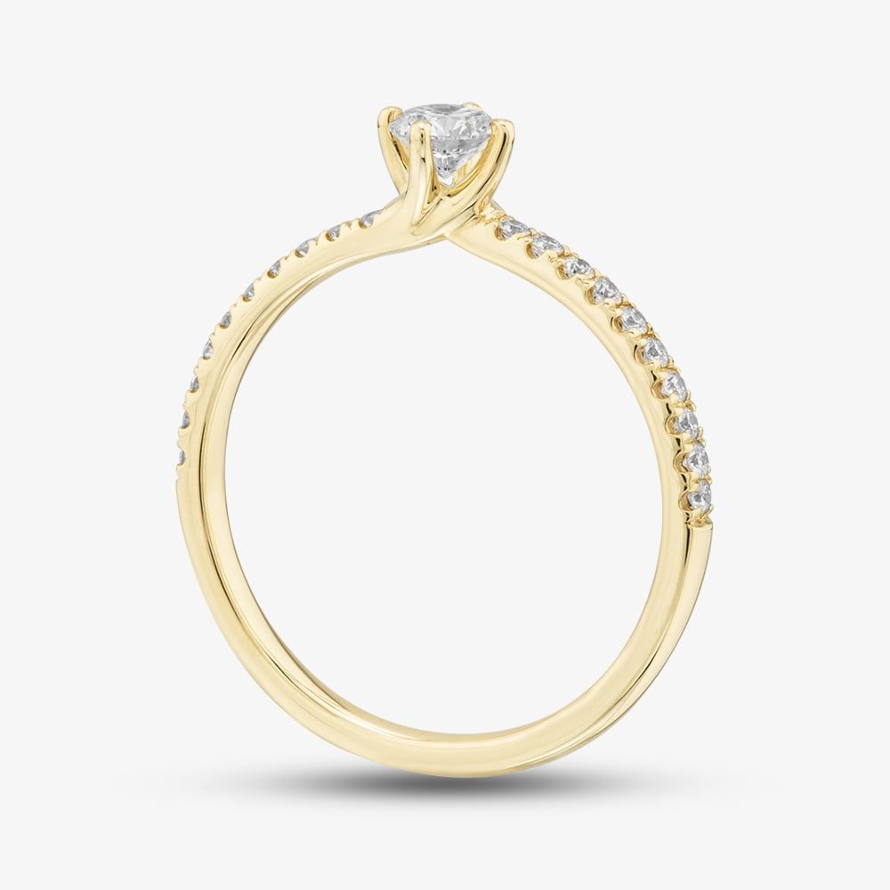 This beautiful 9ct yellow gold ring features a centre stone, a 0.25ct brilliant-cut diamond solitaire with H colour and SI2 clarity, accented by sparkling diamonds set along the shoulders. A total diamond carat weight of 0.40ct The perfect blend of elegance and timeless appeal, making it an ideal choice for any special occasion.