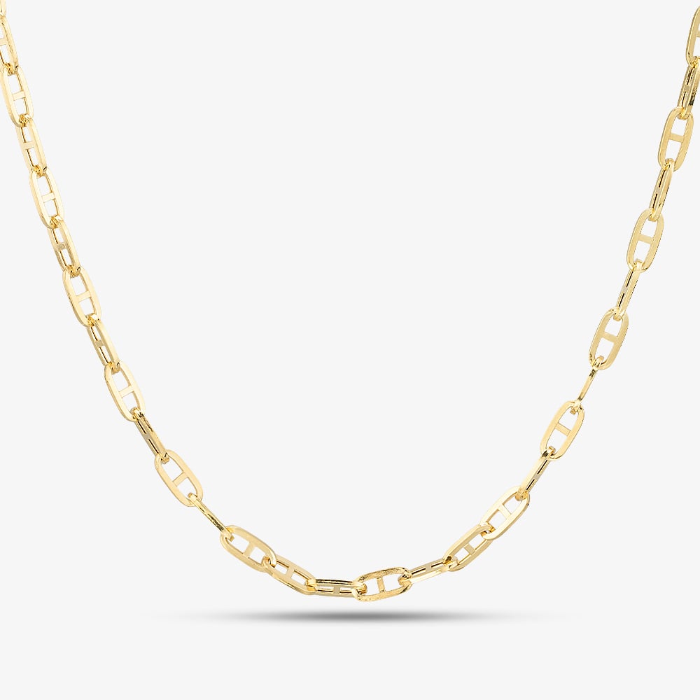 Add effortless elegance to your look with this 9ct Yellow Gold 18 Inch Anchor Chain, designed for both strength and style. Featuring interlocking anchor-style links with a brilliant, polished finish, this classic gold chain captures timeless sophistication. The secure lobster clasp ensures a comfortable fit, making it an ideal piece for layering or wearing on its own for a sleek, modern statement.