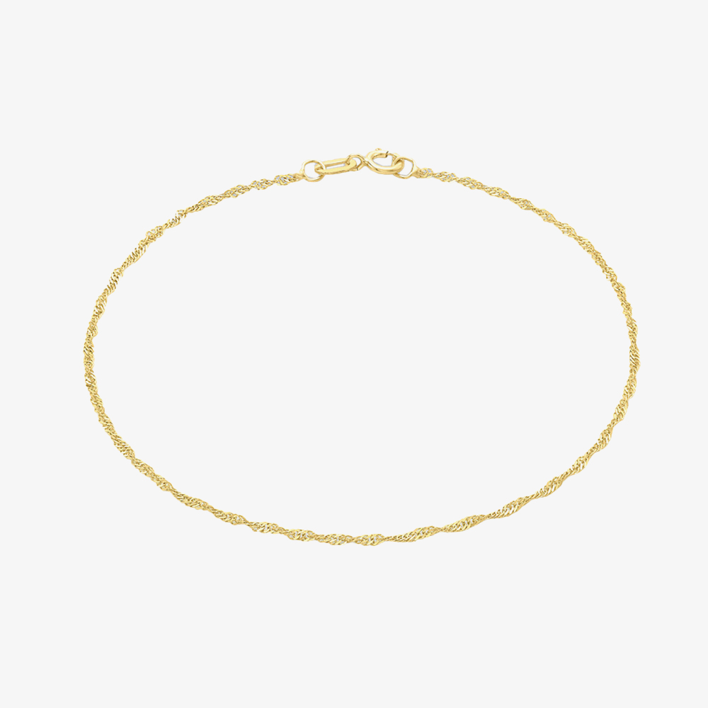 A stunning addition to any look, the 9ct Yellow Gold 18cm Twisted Curb Chain Bracelet offers simply beautiful style to anyone who wears it. Made from 9ct yellow gold and measuring 18cm long and 0.8mm wide, this polished-finish chain features a beautiful, twisted curb chain and fastens with a lobster-claw clasp.