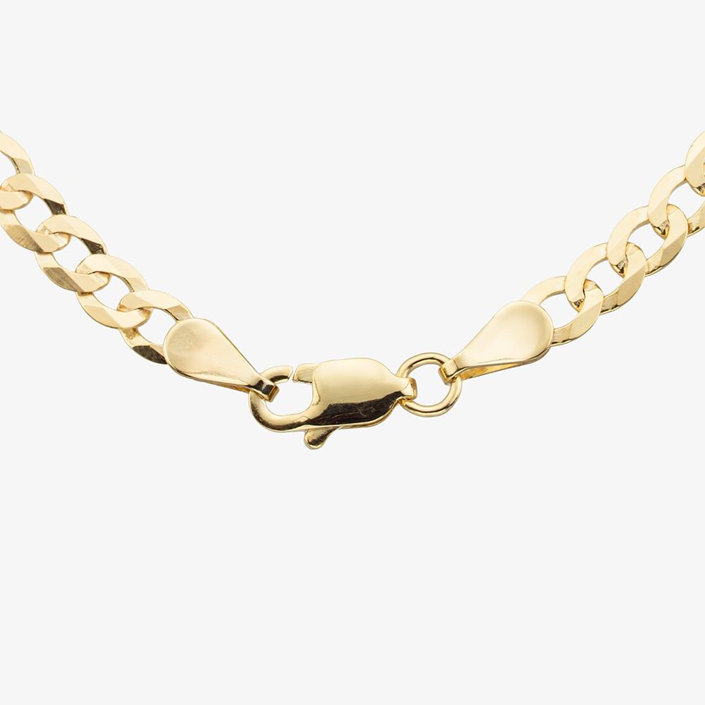 Make a statement with this 9ct yellow gold 24-inch flat curb chain, featuring sleek, polished links that exude contemporary sophistication. Finished with a secure lobster clasp, this striking chain is a bold and timeless addition to any jewellery collection.