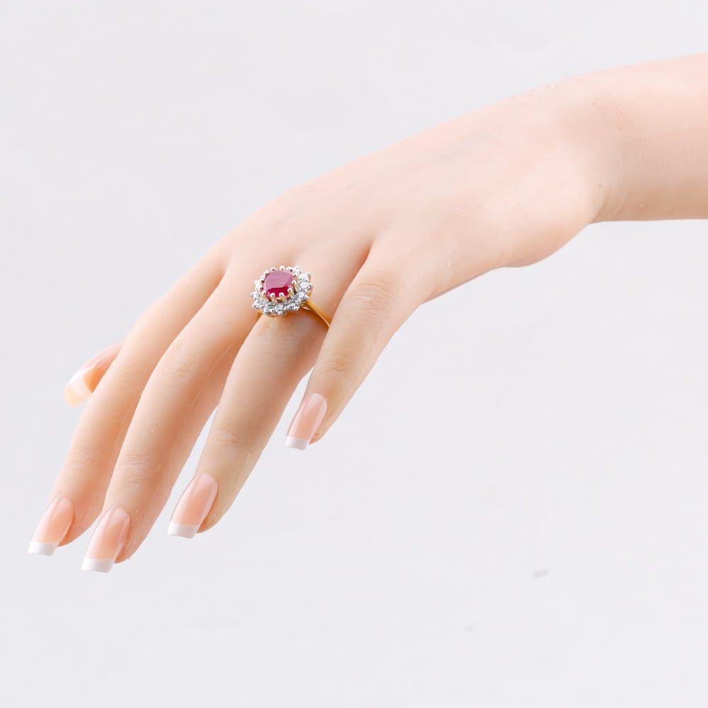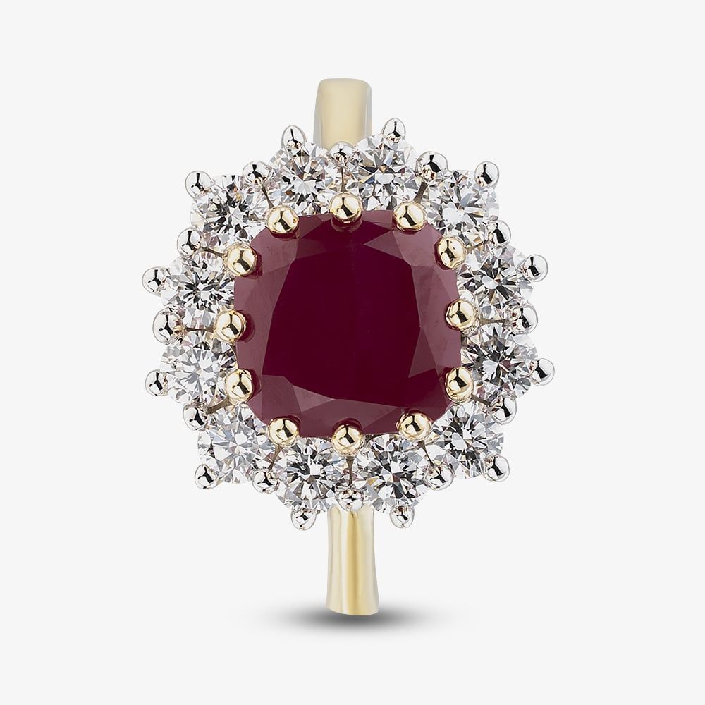 Make a bold and elegant statement with this 9ct Yellow Gold Ruby and Diamond Ring, featuring an impressive 3.95ct round-cut ruby in a 12-claw setting, surrounded by a halo of brilliant-cut lab-grown diamonds totalling 1.00ct. Expertly crafted to maximise sparkle, this striking ring exudes refined sophistication and timeless luxury, a truly show-stopping piece.