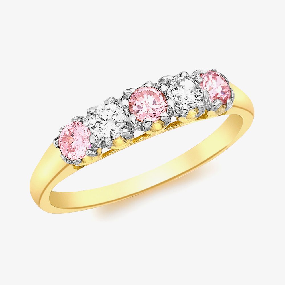 9ct Yellow Gold 5-Stone Pink and White Crystal Ring 1.84.6561