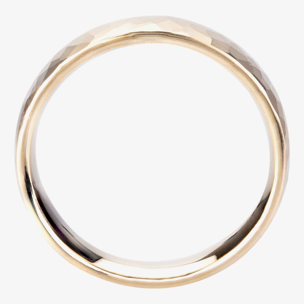 This beautifully crafted 5mm yellow gold ring is the perfect way to say 'I do'. With a stunning hammered appearance on the outside of the band and a smooth inner shank this wonderful ring will add a touch of elegance to your special day.
