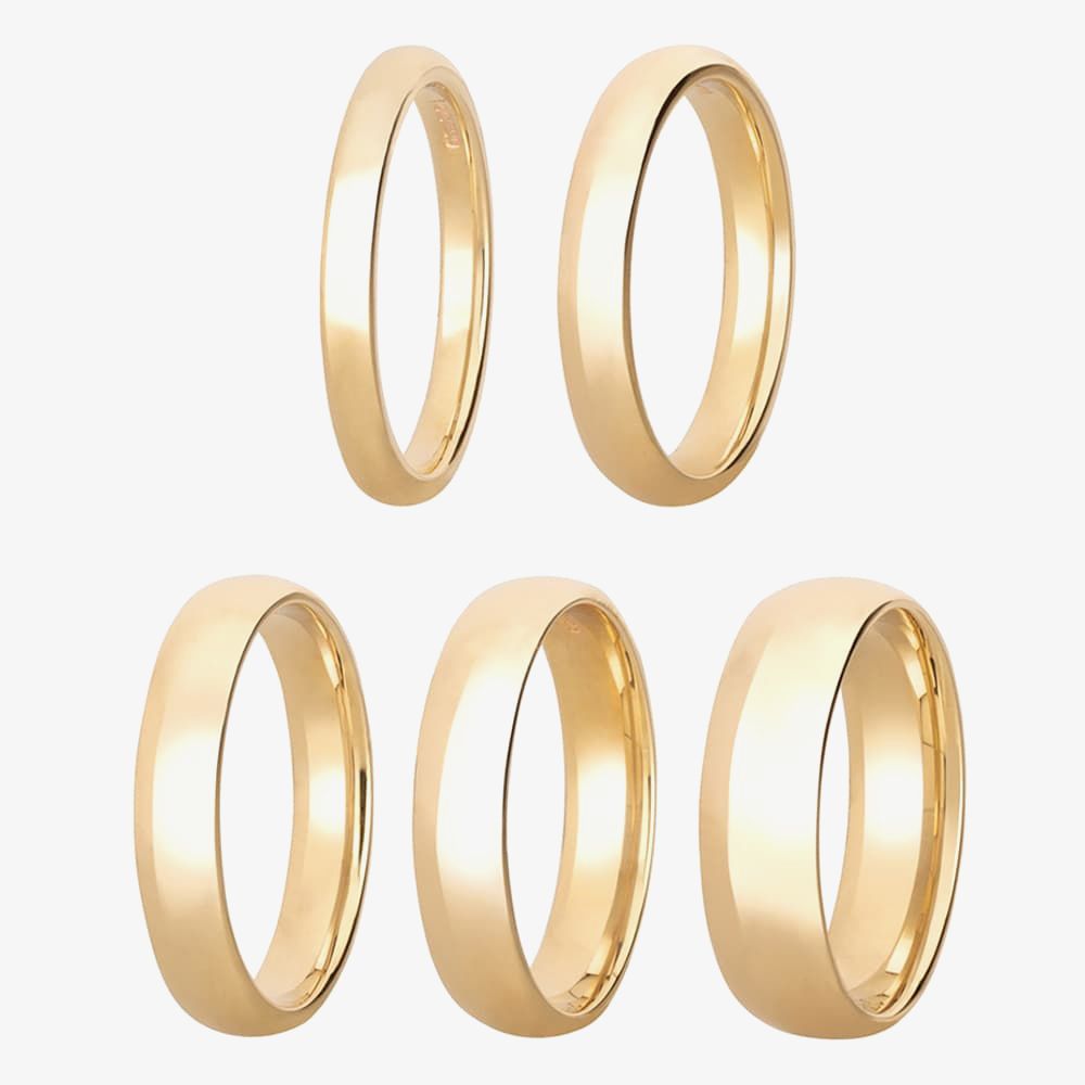 A 9ct Yellow Gold court wedding ring with a band width of 5mm and an approximate weight of 6.32g