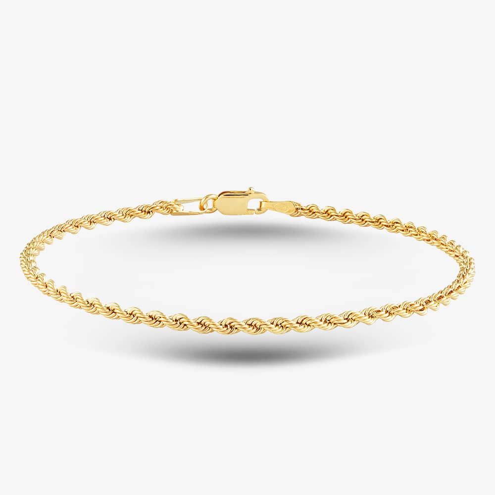 T.H.Baker 9ct Yellow Gold 7.25 Inch Rope Chain Bracelet 040HVCY-7.25