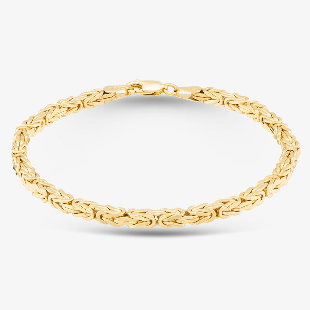 Crafted in 9ct yellow gold, this eye-catching byzantine chain bracelet is perfect for everyday wear. The bracelet is finished with a lobster clasp fastening for easy wear and safe removal.