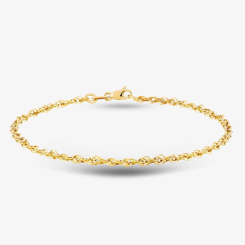This 7.5 inch Prince of Wales chain bracelet is created in 9ct Yellow Gold and features a diamond-cut finish. It has a weight of 1.7g and is completed with a lobster clasp fastening.