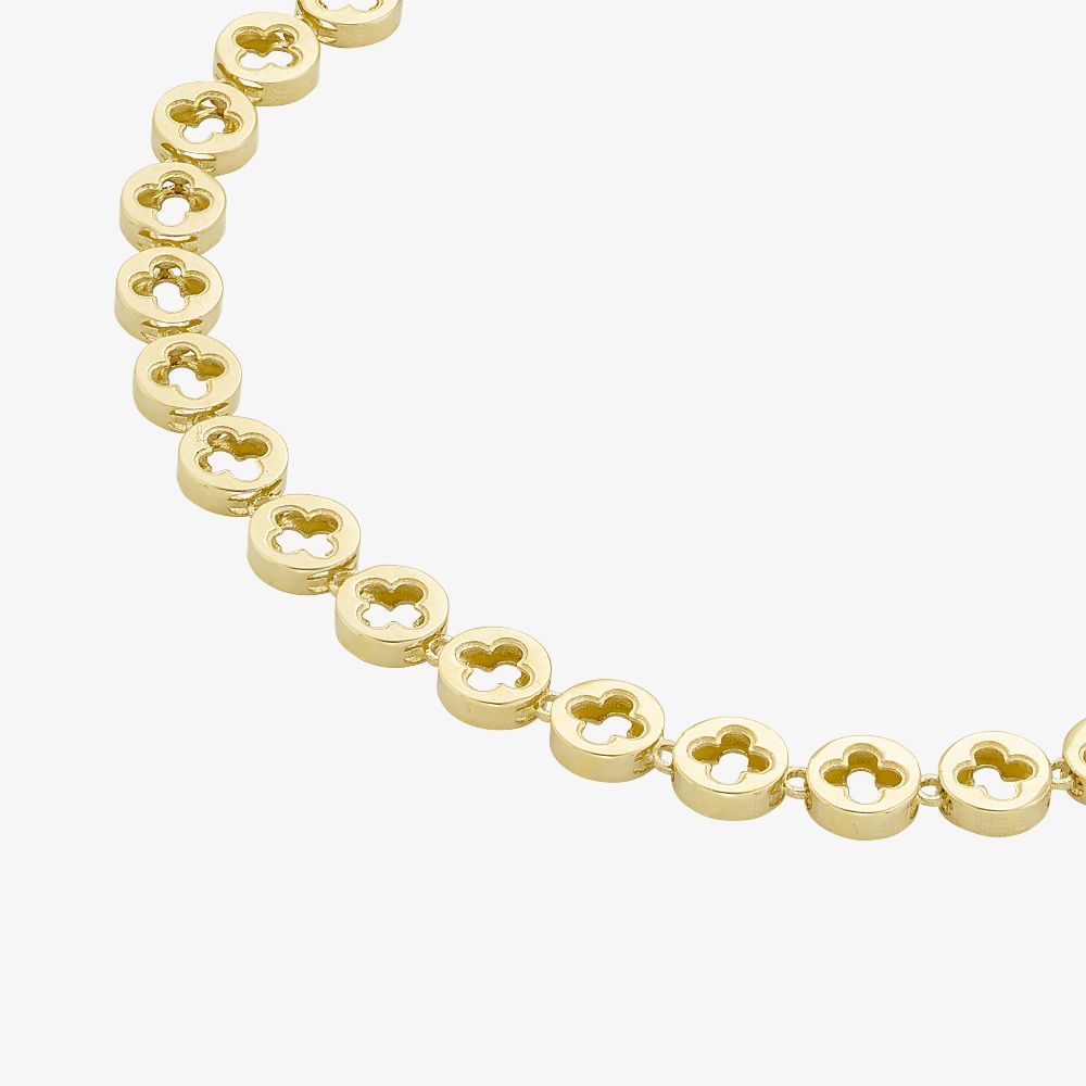 Crafted in 9ct yellow gold, this 7.5-inch bracelet features a charming row of circles, each delicately cut out with a flower motif. Finished with a secure lobster clasp, it combines intricate detailing with timeless elegance, a graceful and versatile addition to any fine jewellery collection.