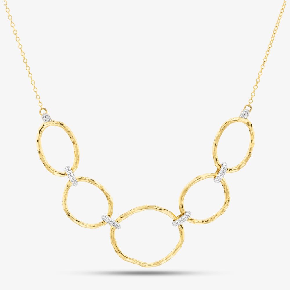 This stunning necklace is crafted in 9ct yellow gold with pave diamond accents and a hammered texture finish for a modern look. Wear individually or pair with matching items from the collection to complete your look.
