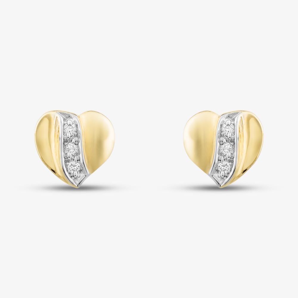 9ct Yellow Gold Brilliant Cut Diamond Curved Heart Studs Earrings E813-9