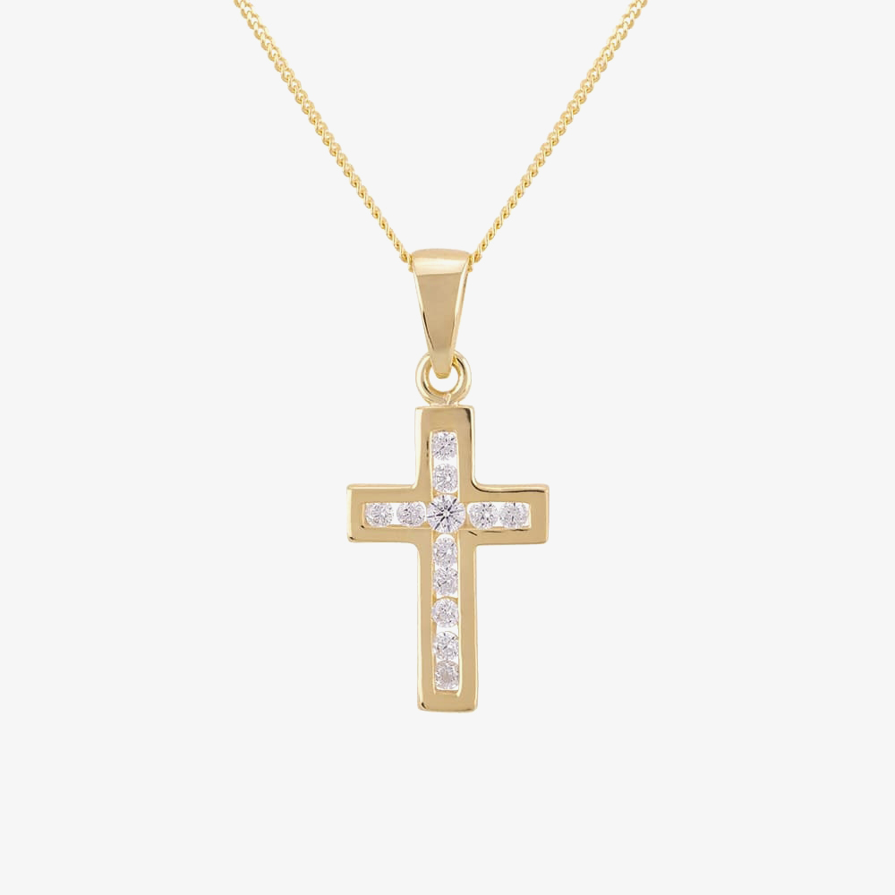 9ct Yellow Gold Channel-set Cubic Zirconia Cross GCS9
