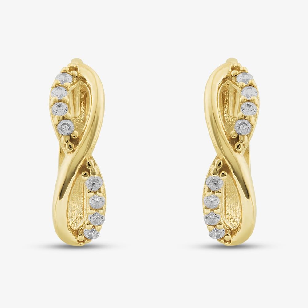 Add a touch of sparkle with these 9ct yellow gold huggie hoops, featuring an elegant infinity twist design set with shimmering cubic zirconia—perfect for everyday glamour.
