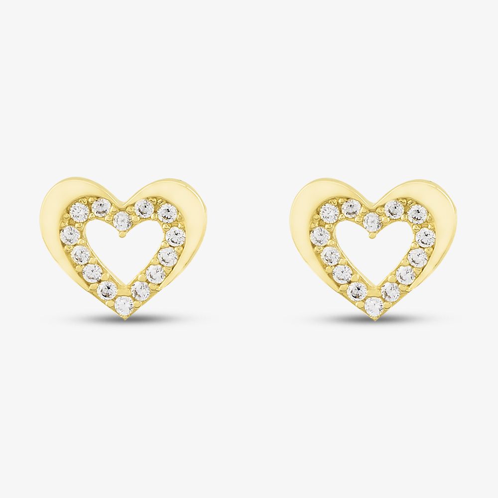 9ct Yellow Gold Cubic Zirconia Open Heart Stud Earrings E1625Y