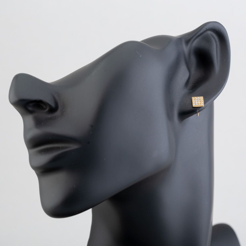 Adorn your ears with these 6mm square pave studs, lovingly crafted from 9ct yellow gold. Each stud sparkles with 16 brilliant-cut white cubic zirconia stones, capturing light with every move. Secured with a delicate butterfly backing, these exquisite studs will add a touch of elegance and sophistication to your everyday style.