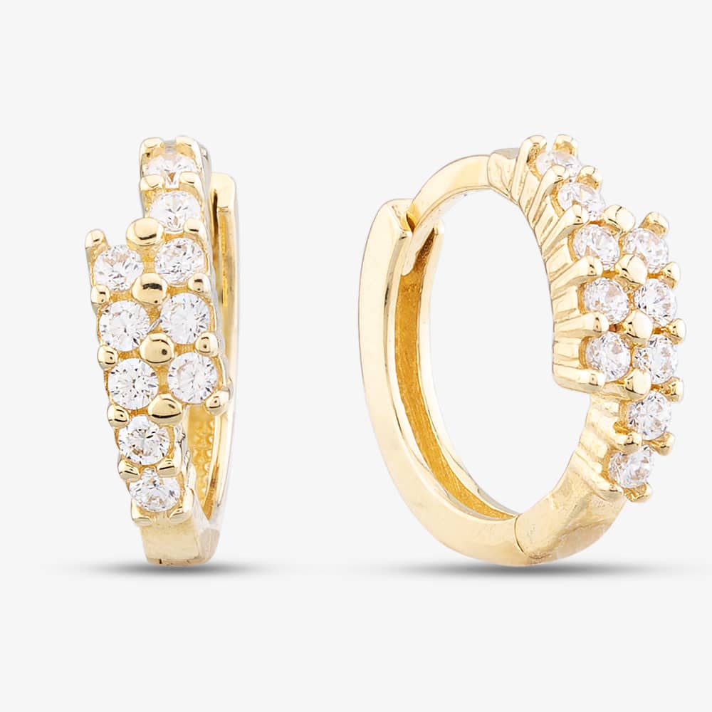 T.H.Baker 9ct Yellow Gold Cubic Zirconia Two Row Hoop Earrings E1630Y