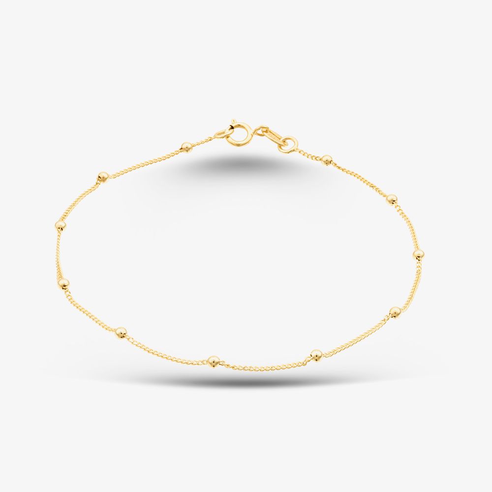 Crafted in 9ct yellow gold, this elegant bracelet features a classic curb link design accented with polished 1.5mm gold balls for added texture and shine. With its refined finish and timeless style, it’s perfect for everyday wear or layering with other favourites.
