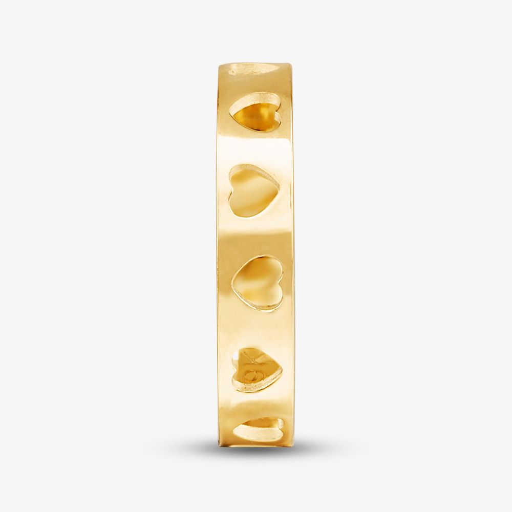 A modern 9ct yellow gold band ring crafted with cut-out hearts, the ideal piece to be worn alone or stacked with other rings.