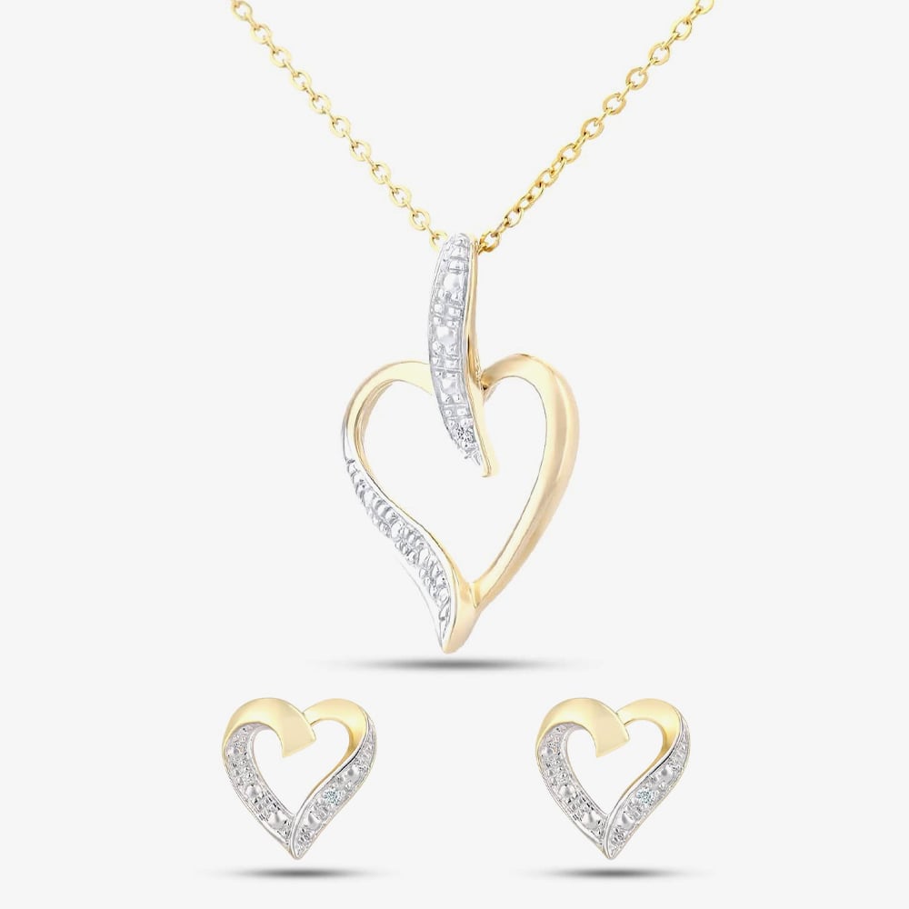 9ct Yellow Gold Open Heart Diamond Stud Earrings