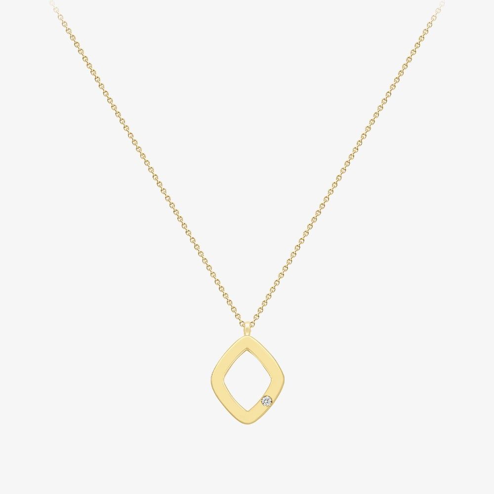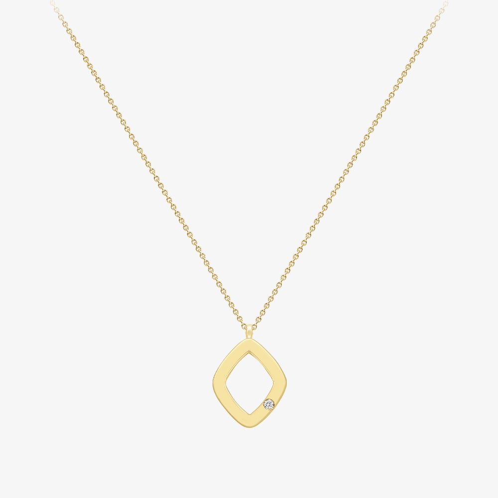 Elegant and contemporary, this 9ct yellow gold necklace features an open diamond-shaped pendant adorned with sparkling diamonds. Suspended from a fine chain, the geometric design adds a modern twist to a classic piece—perfect for everyday elegance or layering with your favourite styles.