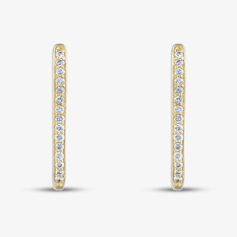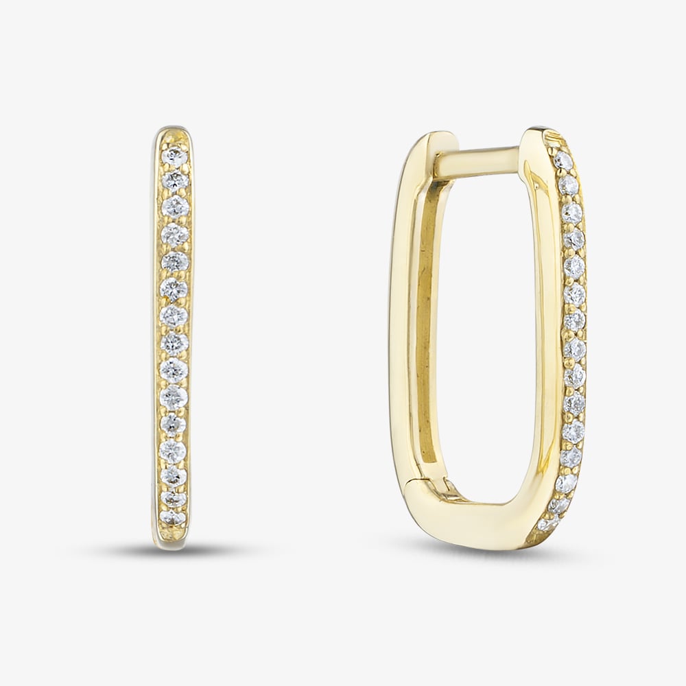 Crafted from polished 9ct yellow gold, these elegant earrings have a contemporary rounded square hoop design that will complement a number of outfit styles. Set with a row of sparkling, white diamonds, these earrings have a hinge clasp and are great for gifting or adding to your own collection.