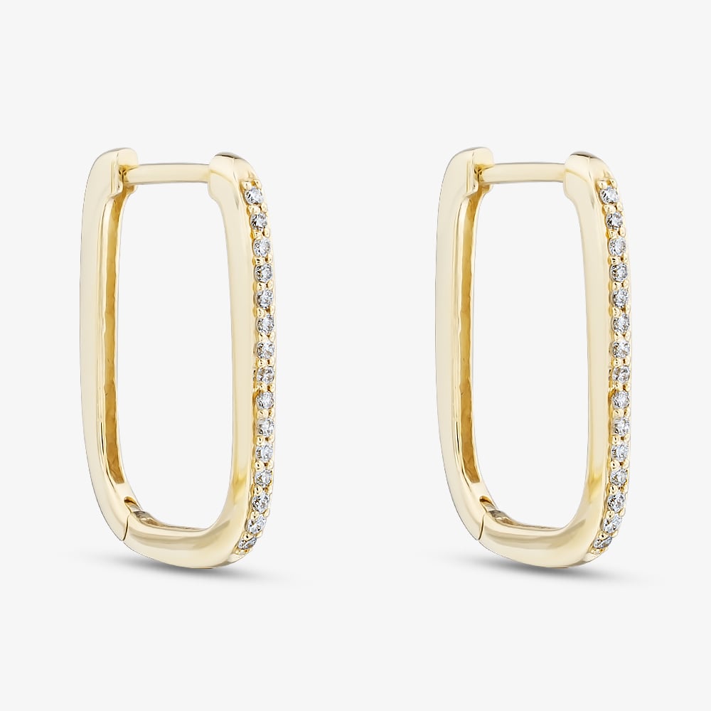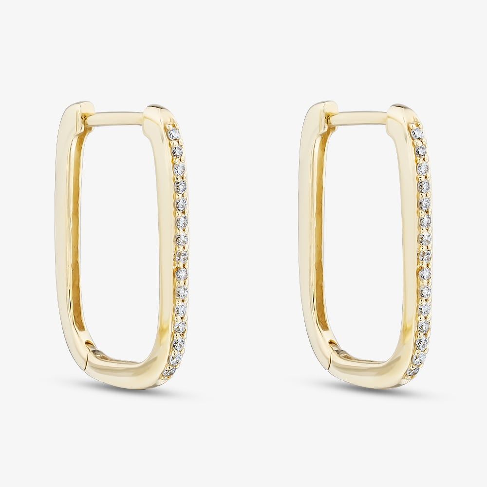 Crafted from polished 9ct yellow gold, these elegant earrings have a contemporary square hoop design perfect for elevating your day to evening looks. Set with a row of sparkling, white diamonds, these earrings are perfect for gifting or adding to your own collection.