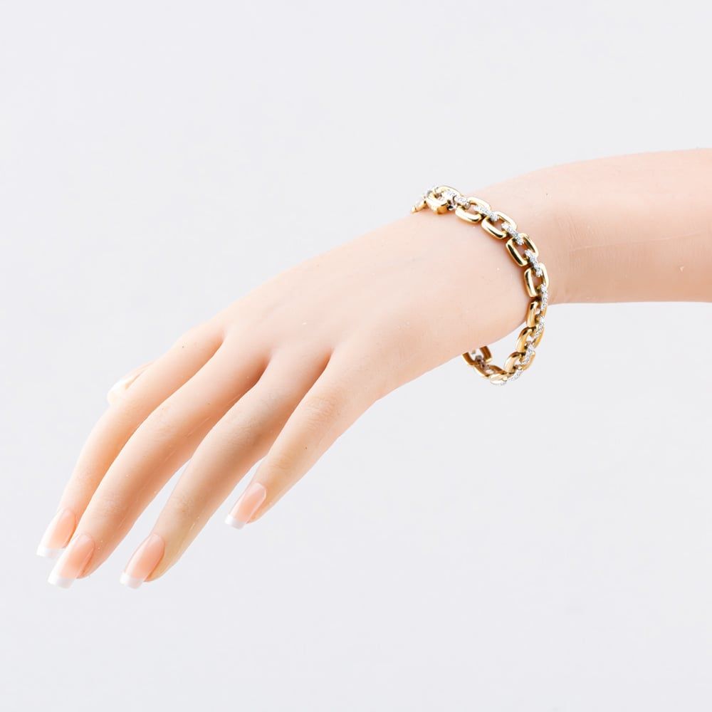 Item Code: BR1068YW/250-10T.H.Bakerhttps://www.thbaker.co.uk/media/catalog/product/0/1/01-22-25130616_2.jpghttps://www.thbaker.co.uk/media/catalog/product/0/1/01-22-25130616_3.jpghttps://www.thbaker.co.uk/media/catalog/product/0/1/01-22-25130616_model_01.jpgadd-to-cartcondition:Nodisc_no_stock:NoNoNoT.H.BakerBR1068YW/250-10012225130616LadiesOfficial T H Baker Packaging12 Month WarrantyNoBracelet7.5inchStone SetJewellery Clasp9ct Yellow GoldGoldDiamondWhiteRound{"name":"v12_finance","text":"Or from \u00a381 per month","imageUrl":"https:\/\/www.thbaker.co.uk\/media\/nosto\/v12-finance.png"}9ct Yellow Gold Diamond Square Link Bracelet01-22-251306162026-03-24 00:00:00[{"path":"\/Jewellery\/Diamond Jewellery","url":"\/diamonds\/"},{"path":"\/Jewellery","url":"\/jewellery\/"},{"path":"\/Brands A-Z\/T H Baker Jewellery","url":"\/t-h-baker-jewellery\/"},{"path":"\/Brands A-Z\/T H Baker Jewellery\/T H Baker Diamonds","url":"\/t-h-baker-diamonds\/"},{"path":"\/Jewellery\/Diamond Jewellery\/Round Diamond Jewellery","url":"\/round-diamond\/"},{"path":"\/Brands A-Z\/T H Baker Jewellery\/Womens","url":"\/t-h-baker-womens\/"},{"path":"\/Jewellery\/Bracelets\/Diamond Bracelets","url":"\/diamond-bracelets\/"},{"path":"\/Jewellery\/Bracelets\/Gold Bracelets","url":"\/gold-bracelets\/"},{"path":"\/Brands A-Z\/T H Baker Jewellery\/T H Baker Bracelets","url":"\/t-h-baker-bracelets\/"},{"path":"\/Jewellery\/Bracelets\/Gemstone Bracelets","url":"\/gemstone-bracelets\/"},{"path":"\/Jewellery\/Jewellery Collections\/New Arrivals","url":"\/new-arrivals\/"},{"path":"\/Jewellery\/Bracelets","url":"\/bracelets\/"},{"path":"\/Jewellery\/Diamond Jewellery\/Luxury Diamond Jewellery","url":"\/luxury-diamonds\/"},{"path":"\/Jewellery\/Fine Jewellery","url":"\/fine-jewellery\/"},{"path":"\/Jewellery\/Gold Jewellery","url":"\/gold-jewellery\/"},{"path":"\/Jewellery\/Ladies Jewellery","url":"\/ladies-jewellery\/"},{"path":"\/Jewellery\/Gold Jewellery\/Yellow Gold Bracelets","url":"\/yellow-gold-bracelets\/"},{"path":"\/Free Gift Card - When you spend \u00a3500+","url":"\/free-gift-card\/"},{"path":"\/Spend over \u00a31000 and receive a \u00a3100 gift card","url":"\/gift-card-promotion\/"},{"path":"\/\u00a3400 Gold Gift Card (\u00a34001 - \u00a35000)","url":"\/400-gold-gift-card\/"},{"path":"\/Free Gift With Purchase Products","url":"\/free-gift-with-purchase-products\/"},{"path":"\/Jewellery\/Diamond Jewellery\/Diamond Bracelets","url":"\/diamond-bracelets-2\/"}]2026-03-24