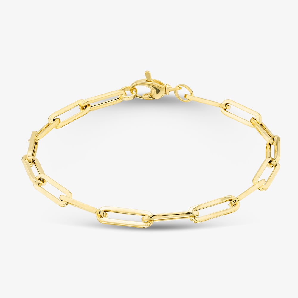 A 9ct yellow Gold bracelet that features polished elongated oval links with a lobster clasp fastening. Length approximately: 7.25"/19cm & Weighs approximately: 2.7 grams.