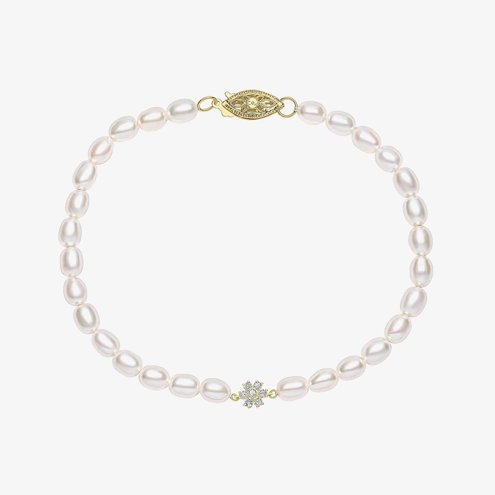 9ct Yellow Gold Flower Diamond Freshwater Pearl Beaded Bracelet GB531W