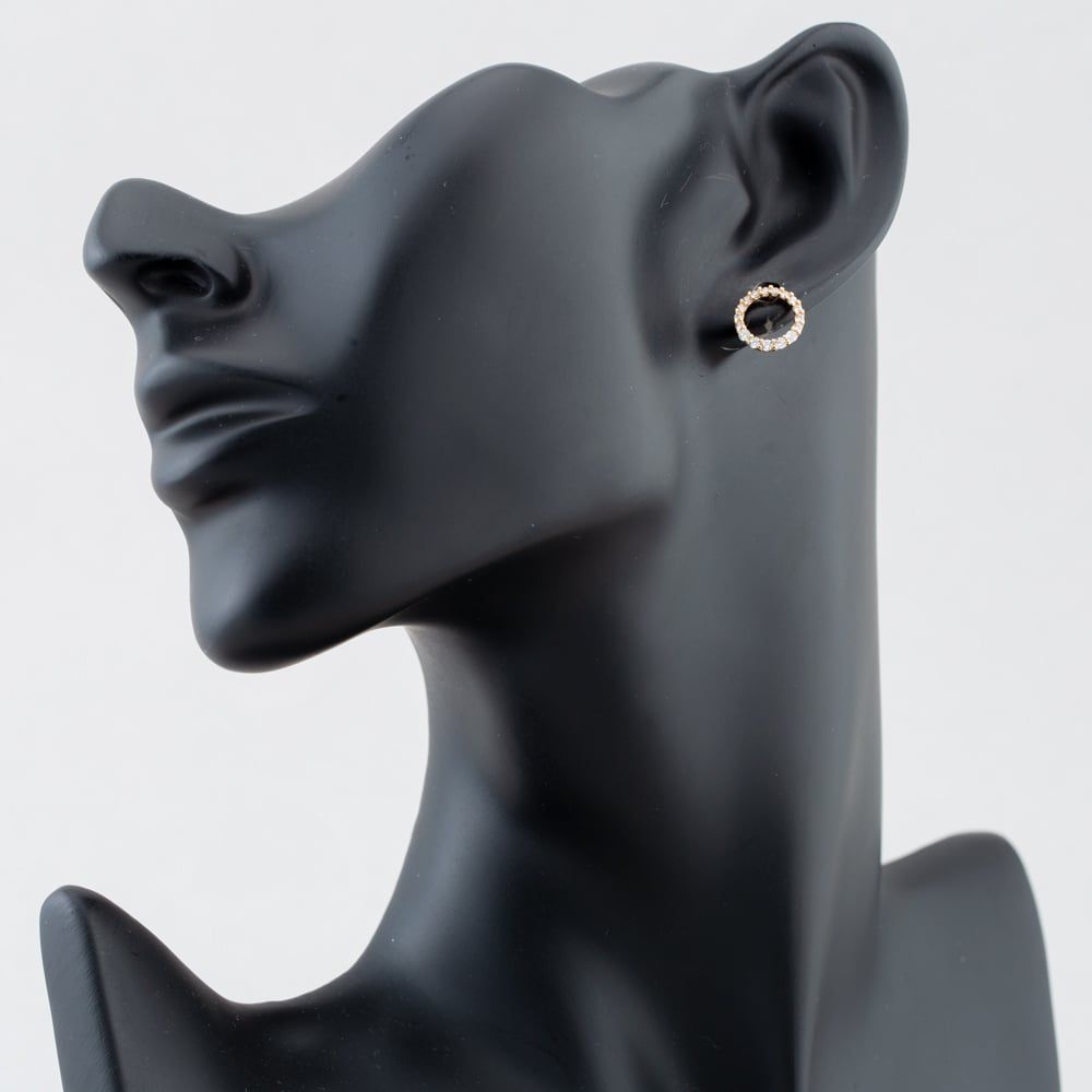 These earrings feature a stunning design filled with graduated white cubic zirconia stones. These earrings are a harmonious blend of timeless gold and contemporary sparkle, with their circular shape symbolizing unity and wholeness. The graduated cubic zirconia stones add a captivating play of light and depth, making these earrings an ideal choice to enhance your style with sophistication and radiance.