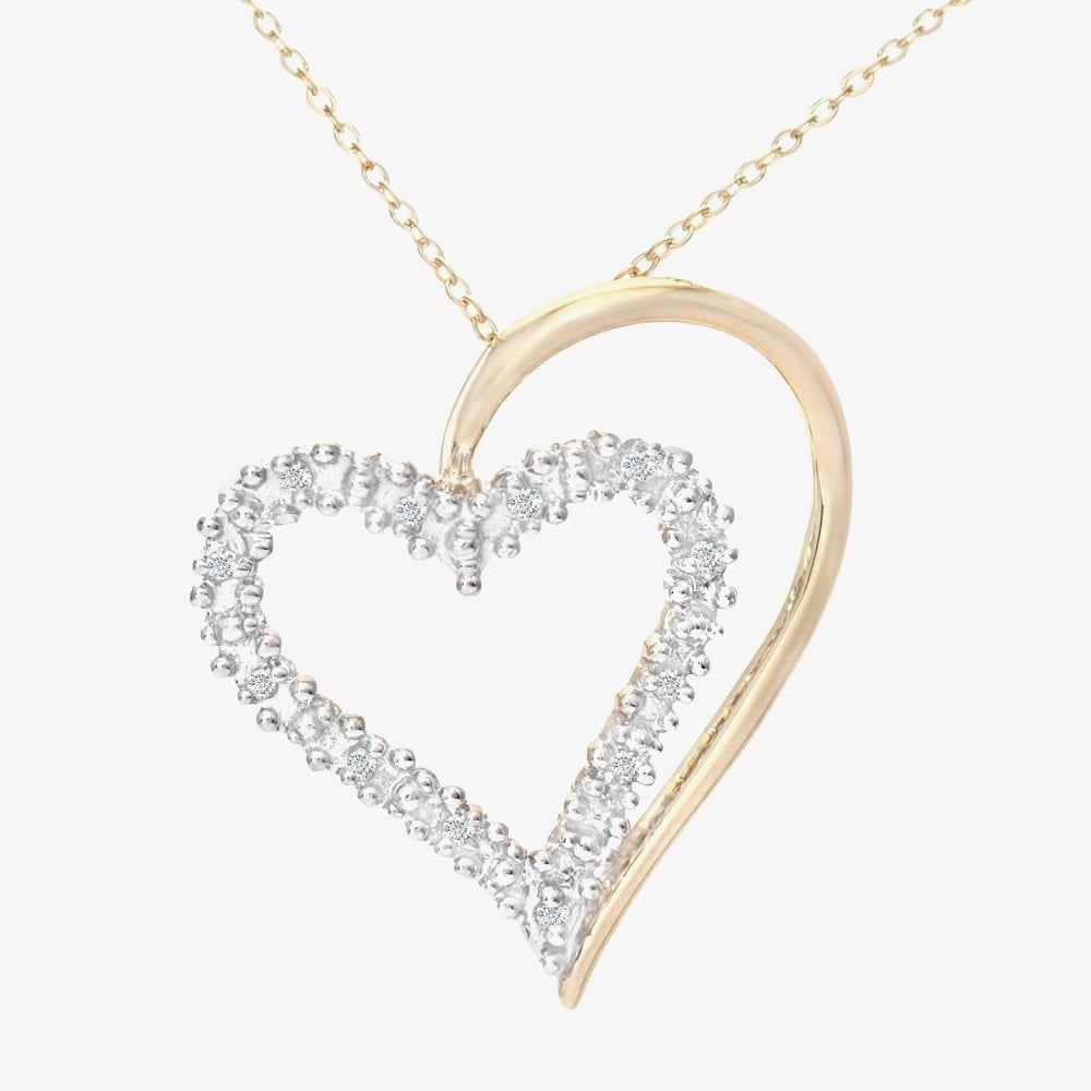 9ct Yellow Gold Large Double Diamond Heart Pendant Necklace PP03175Y 9ct Yellow Gold Large Double Diamond Heart Pendant Necklace PP03175Y