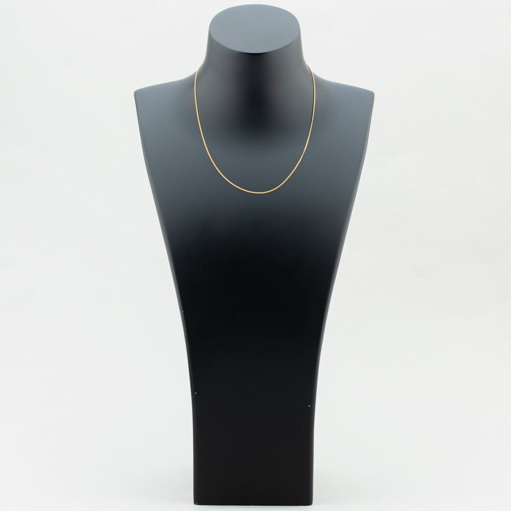 An elegant 9ct yellow gold chain perfect for pairing with your favourite gold pendant. The light filed design is 1.1mm wide, made up of rounded curb links.