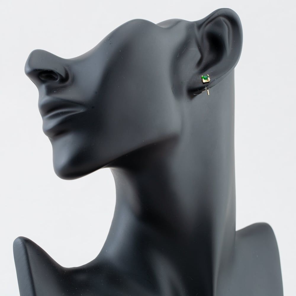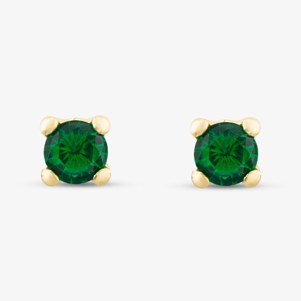 Each earring features a lustrous dark green cubic zirconia stone, emulating the beautiful May birthstone, Emerald. The stones are securely held in place with four delicate claws, adding a touch of sophistication and timeless charm to your style.