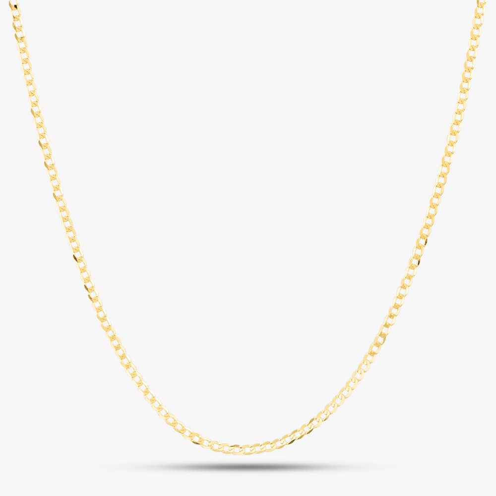 This classic 9ct yellow gold curb chain exudes timeless elegance with its interlocking, uniform links that lie flat for a sleek and polished look.