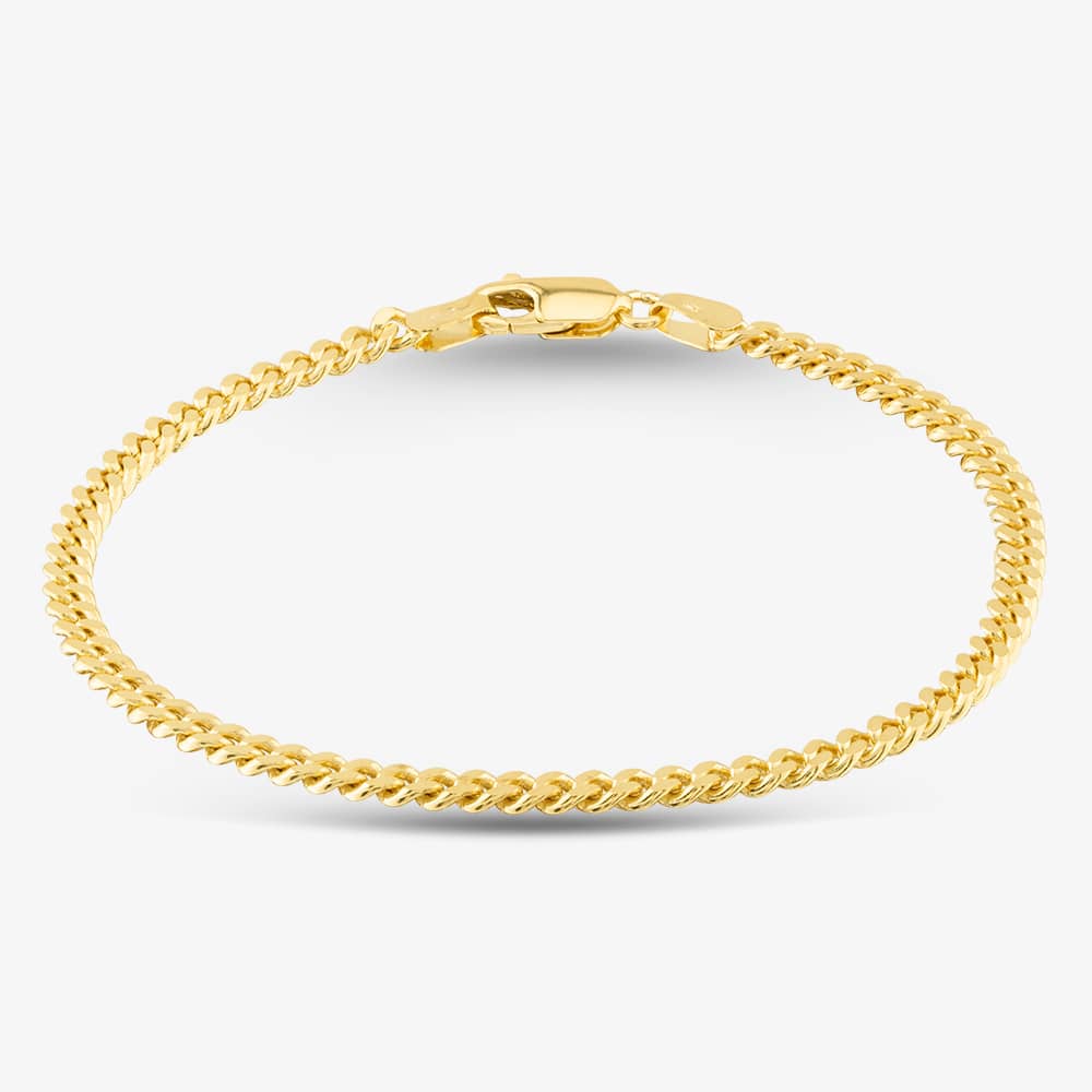 This striking 9ct yellow gold curb chain bracelet boasts a bold and refined design with its interlocking, thick links that lay smoothly against the wrist.