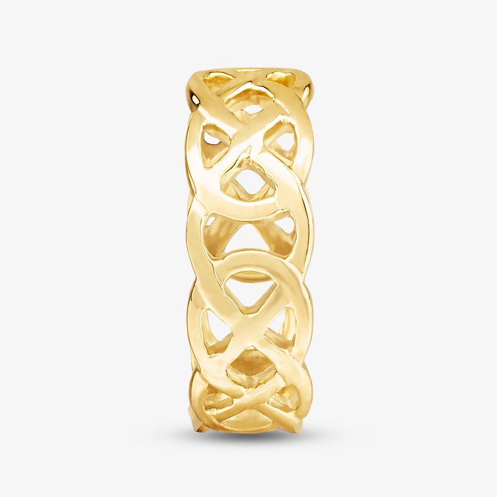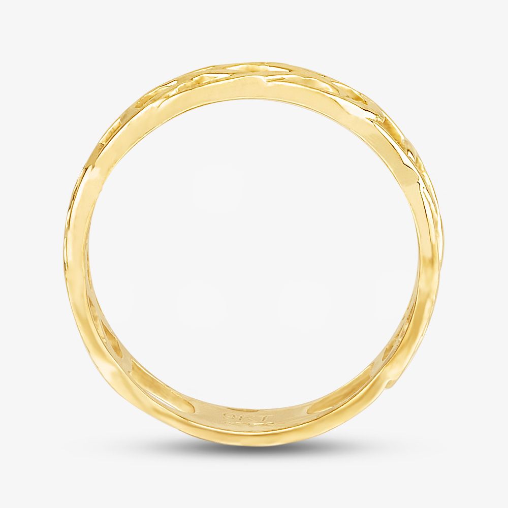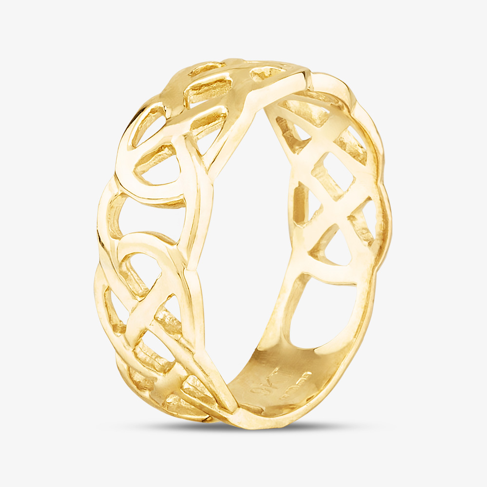 A traditional open Celtic style band ring crafted in 9ct yellow gold, ideal for being worn on its own or for stacking. The perfect addition to your jewellery collection.