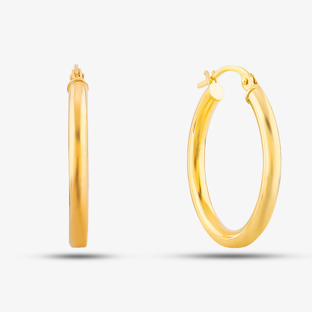 These classic plain oval creole earrings are crafted in 9ct yellow gold and have been finished with a hinged snap fastening, the perfect addition to your earring collection.