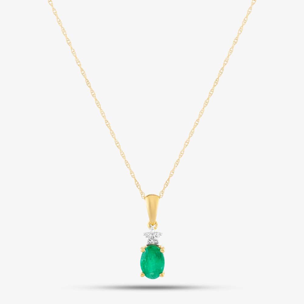 9ct Gold Oval Emerald Diamond Cluster Pendant VP0S296 9KY-EM 9ct Gold Oval Emerald Diamond Cluster Pendant VP0S296 9KY-EM