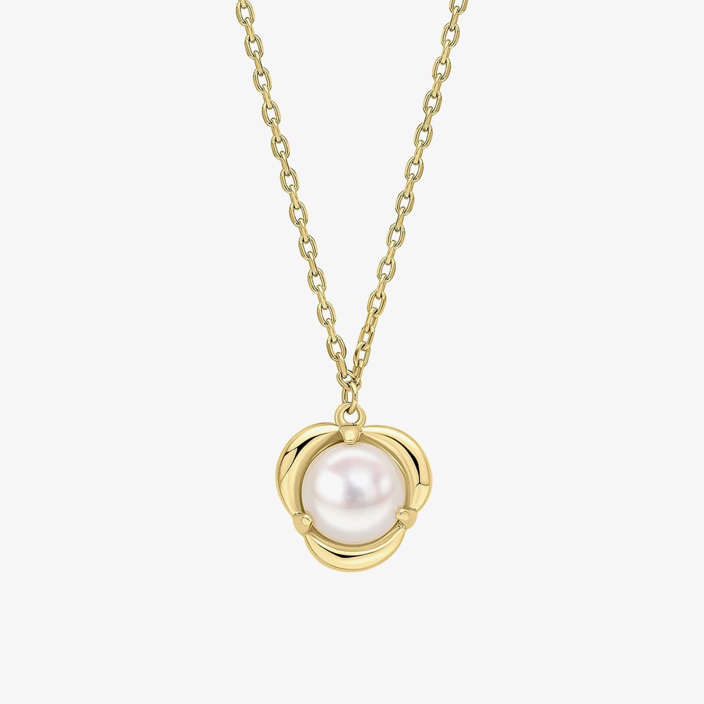 Delicately designed, this necklace showcases a luminous freshwater pearl nestled in a 9ct yellow gold petal setting. Elegant and timeless, it's a subtle statement of natural beauty.