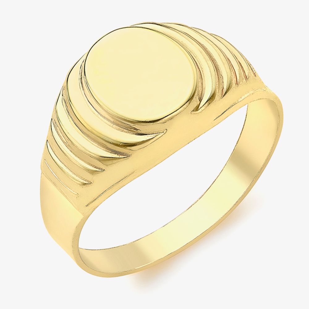 Offering the best of classic design, the 9ct Yellow Gold Ribbed Signet Ring 1.81.0249 is a must-have. Made from polished 9ct yellow gold, this oval signet ring has a 2.4mm ring shank and 7.3mm x 8.6mm ring face framed by a ribbed effect to evoke some vintage style.