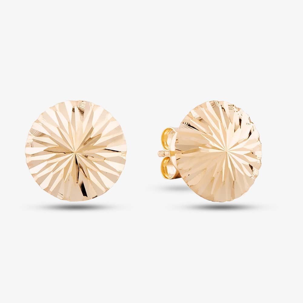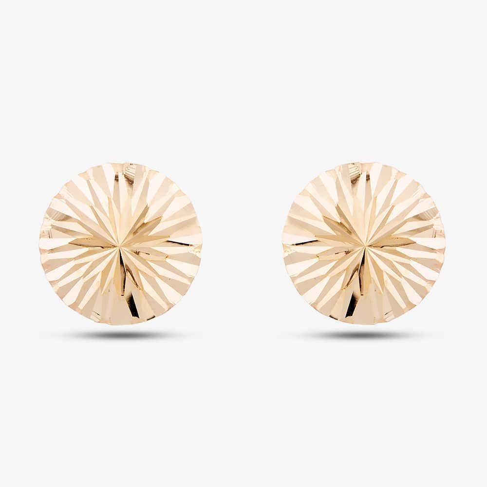 These round disc stud earrings are created in 9ct Yellow Gold and feature a diamond-cut finish. They are approximately 10mm.
