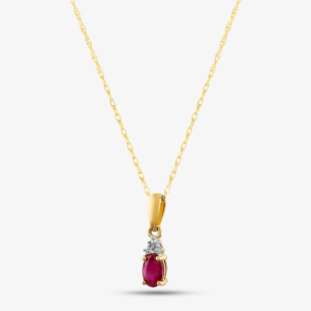 T.H.Baker 9ct Yellow Gold Ruby & Diamond Pendant Necklace QP00178-R YG